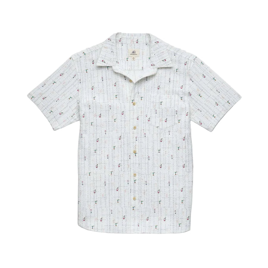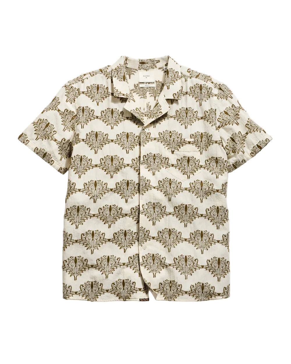 Short Sleeve Botanical Jacquard Camp Shirt | Tinted White/Olive
