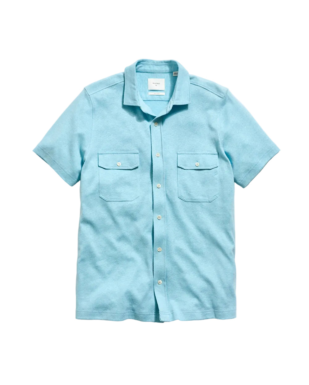 Short Sleeve Hemp Cotton Knit Shirt | Sky Blue