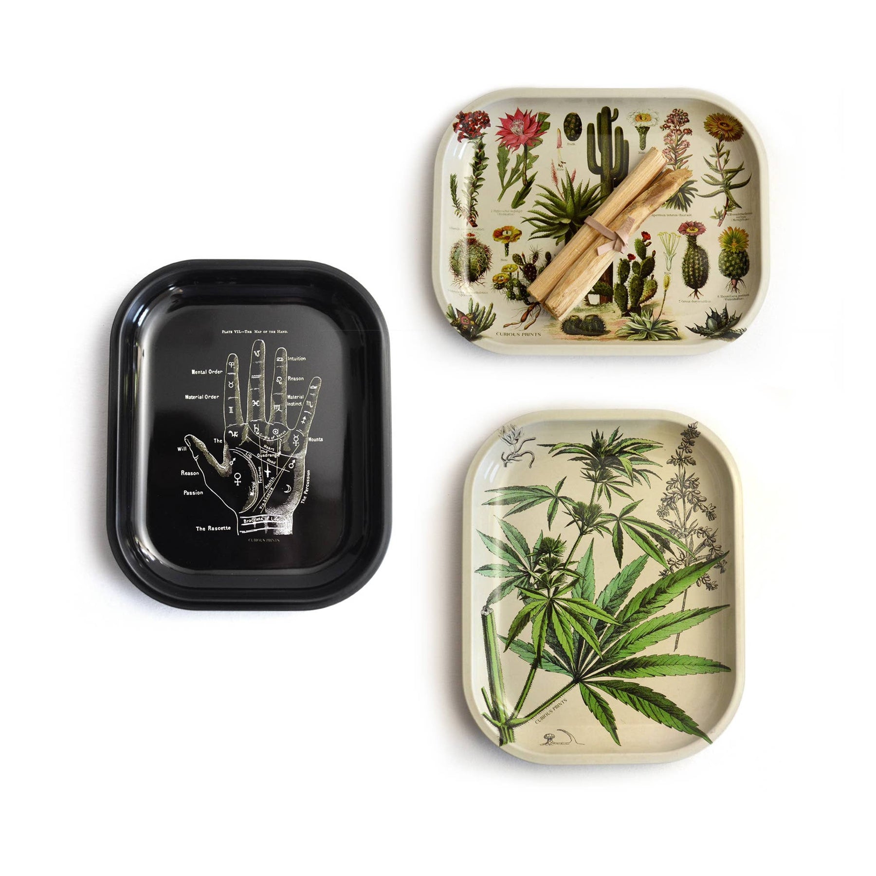 Dark Gemstones Ritual Tray A vintage inspired tray for daily use. 5"x7" tray made of sturdy metal (will not bend). Features vintage scientific illustrations. Perfect as a catch-all tray, trinket tray, or use in your ritual space. Trays are shipped with a plastic sleeve for protection. Food Safe, hand wash, do not microwave. The trays are designed by Curious Prints in Austin, Texas and printed in PRC.