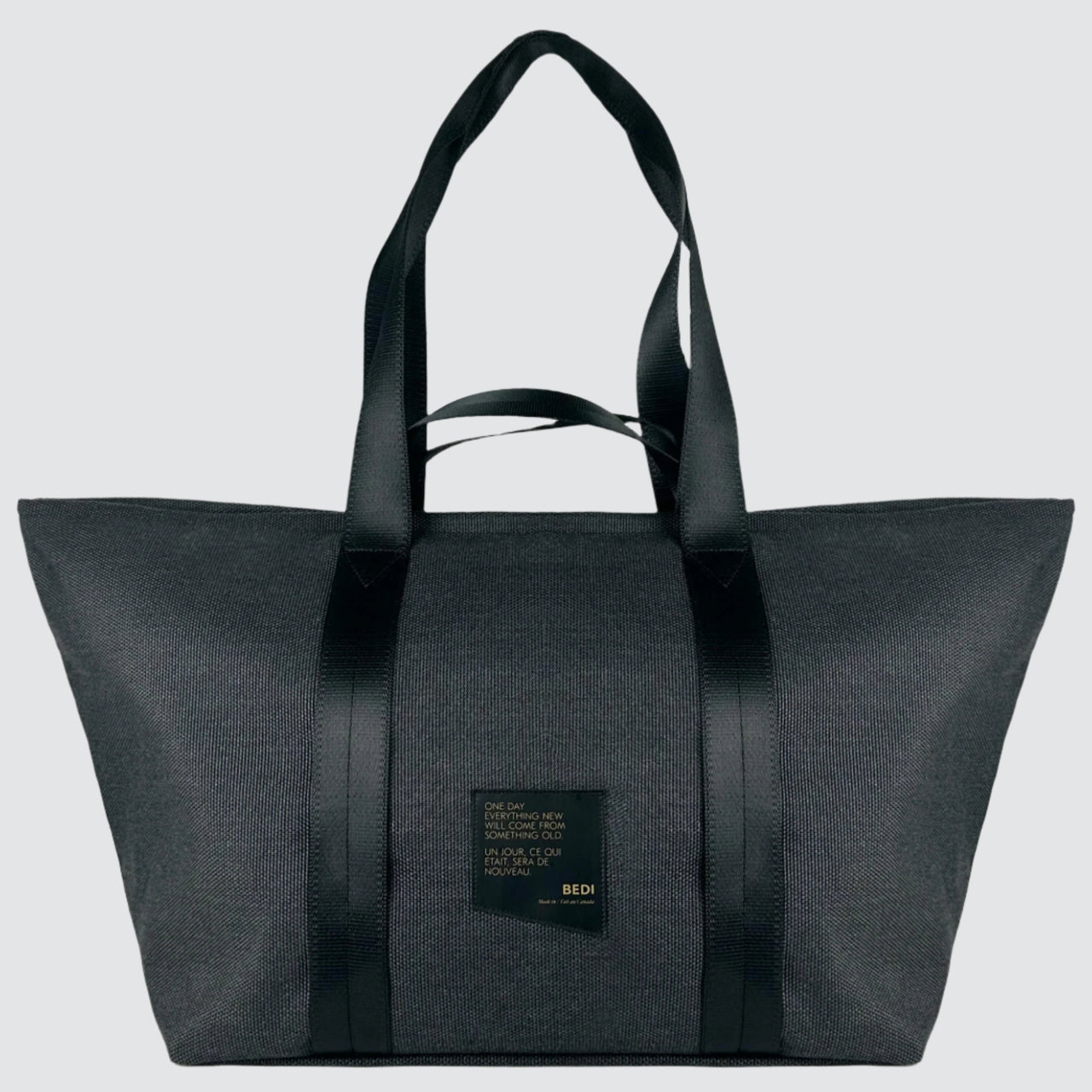 Handmade in Canada. Made with high-quality, weatherproof material originally intended for patio furniture, this bag is versatile, practical, and very durable.