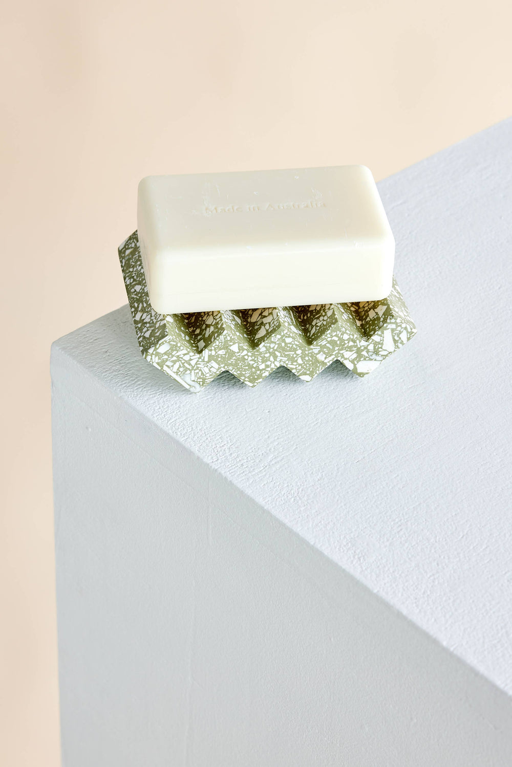 Zig-Zag Olive & White Terrazzo Soap Dish