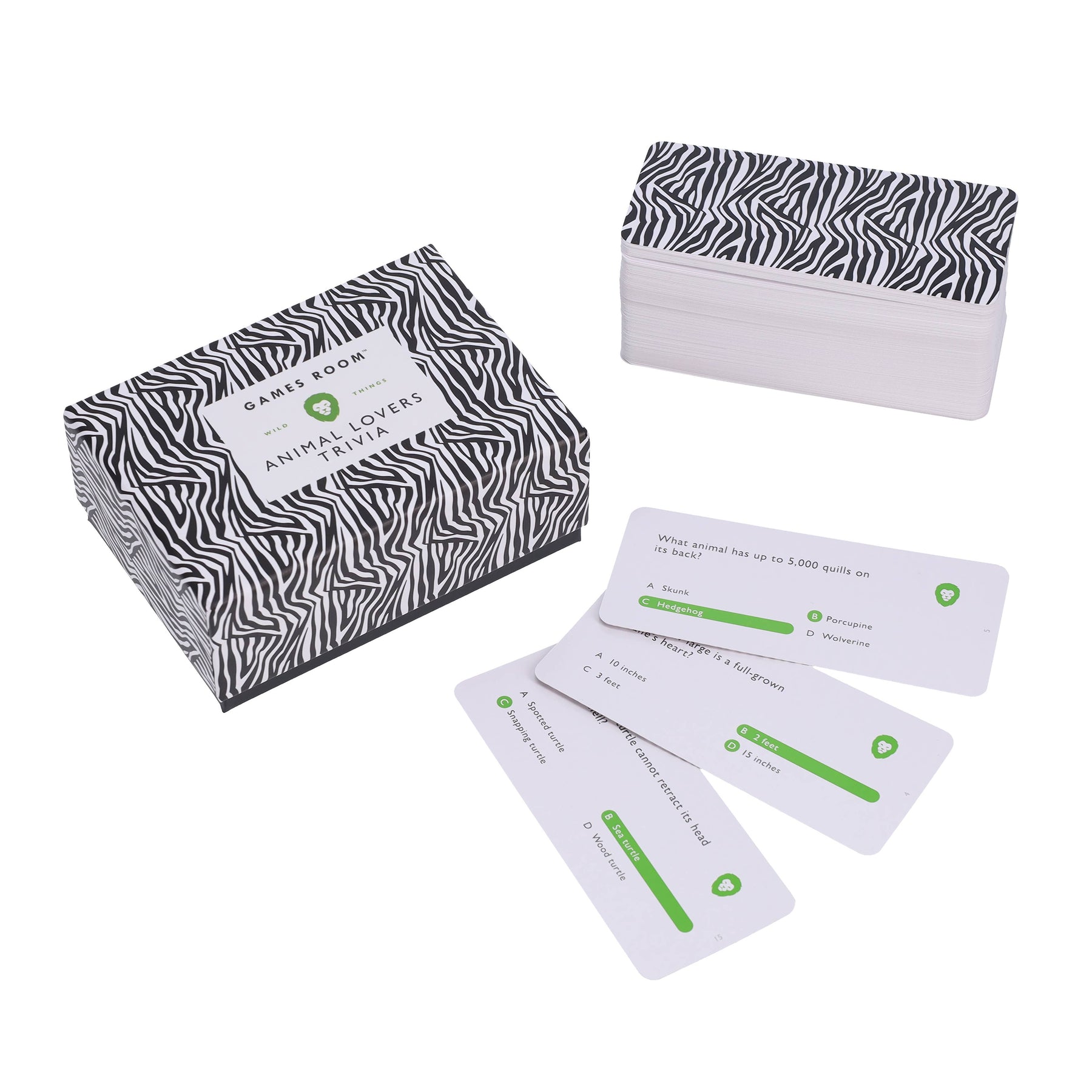 Put your knowledge of the animal kingdom to the test with Animal Lovers Trivia! In a striking and portable eco-friendly box, these 140 questions are a fun trivia challenge wherever you want to play! These multiple-choice questions cover the entire animal kingdom-from marine life to land dwellers.