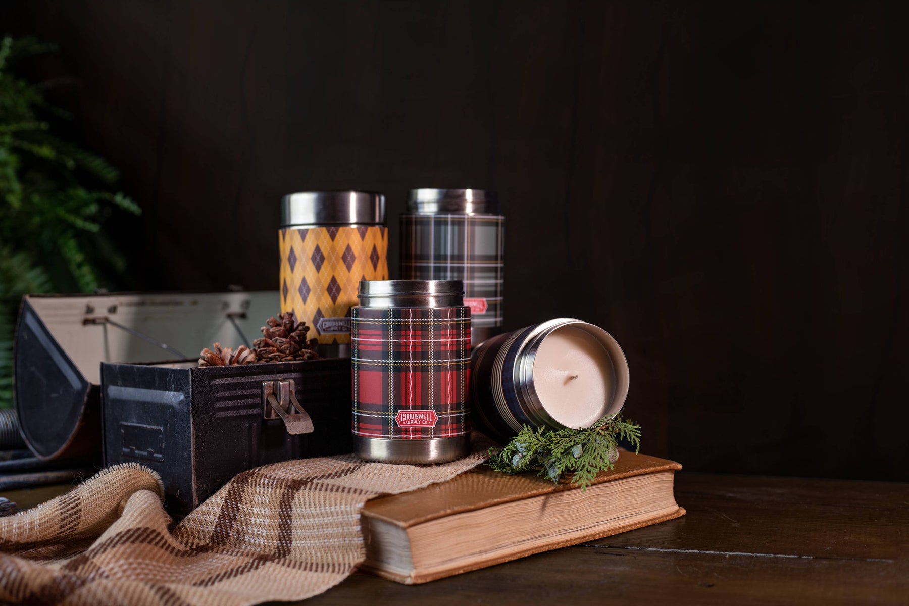 Calling all camp enthusiasts and vintage plaid lovers! Meet your new favorite candle - inspired by vintage thermoses and housed in an actual (and reusable!) 12oz stainless steel vacuum insulated flask, our new Vintage Canteen Candles are ready to enjoy cozied up at home or out on your next adventure! Decked out in classic blue, rust and mint gingham and stripes, our Under the Stars soy candle blends deep, spicy notes of incense and amber with rich notes of sandalwood and oud.