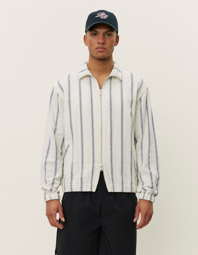 Crafted in cotton in an unusual dobby weave check structure with a summery stripe pattern, this track top is a laid back layering piece for the summer and beyond.