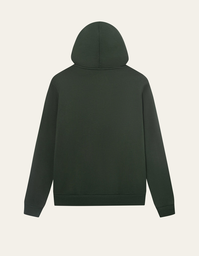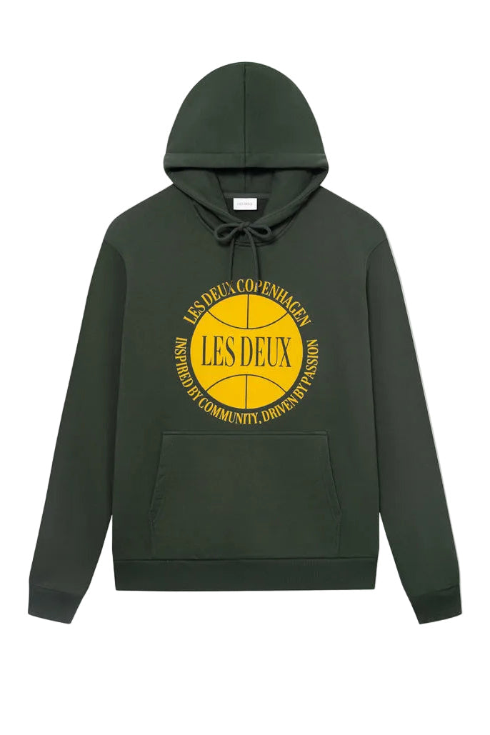 A soft brushed hoodie in organic cotton, featuring a bold flock-print basketball graphic on the chest.