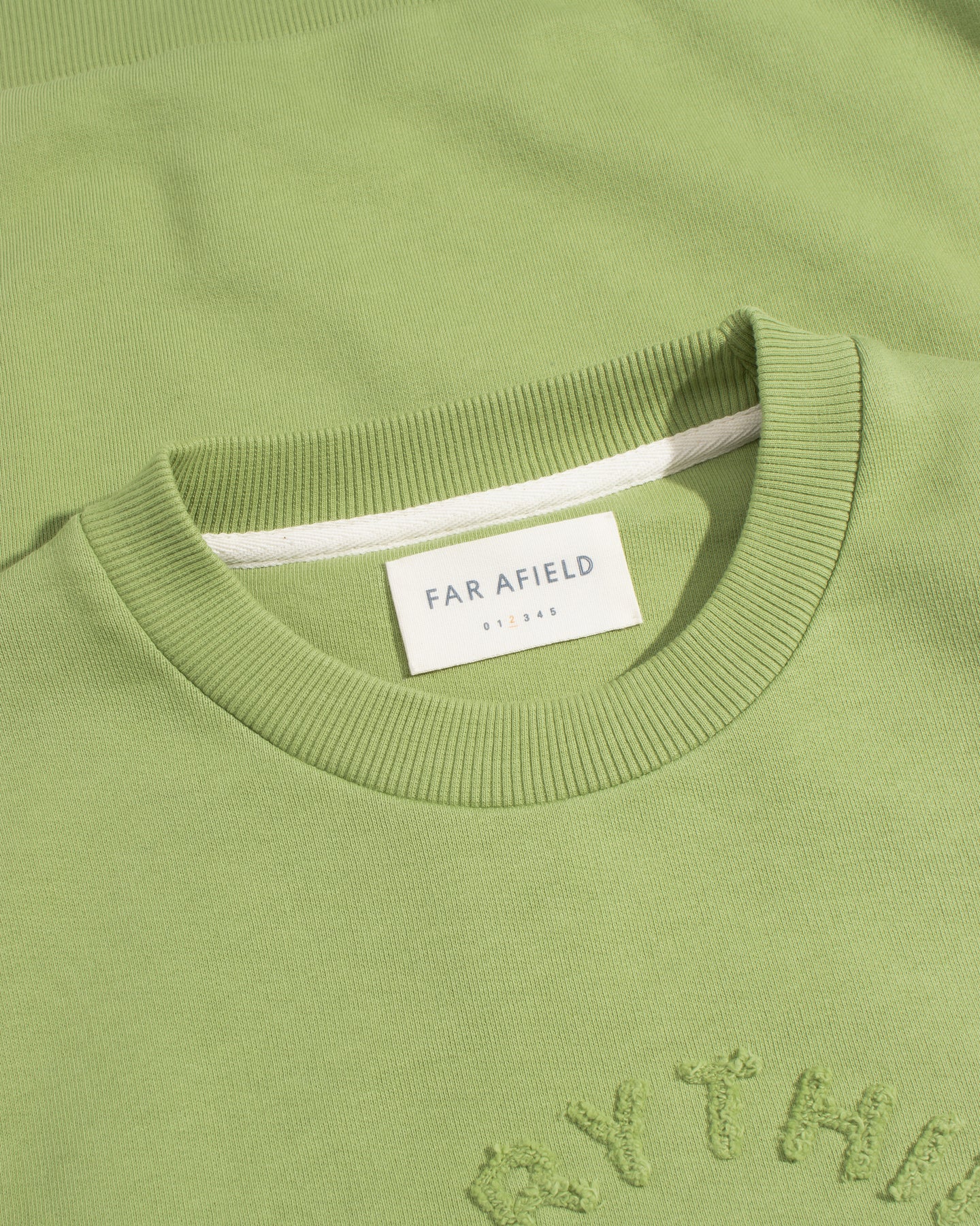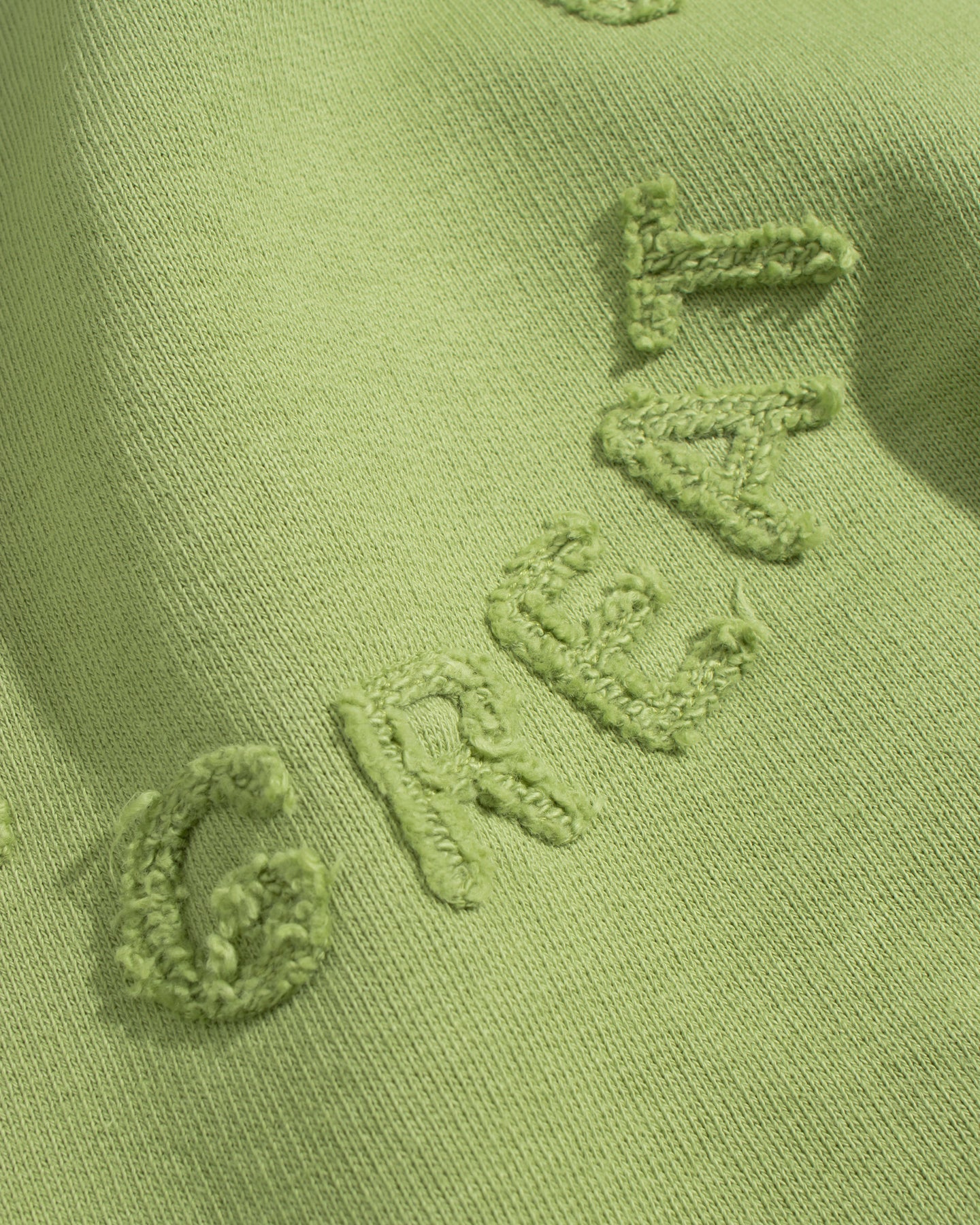 A classic crew sweatshirt cut from garment-dyed organic cotton loopback. The colour has that softly lived-in look from day one, with natural variation in tone that will keep mellowing with wear and washing. Finished with tonal looped bouclé embroidery reading “Everything Is Great” across the chest. Relaxed fit with a comfortable, easy shape through the body.