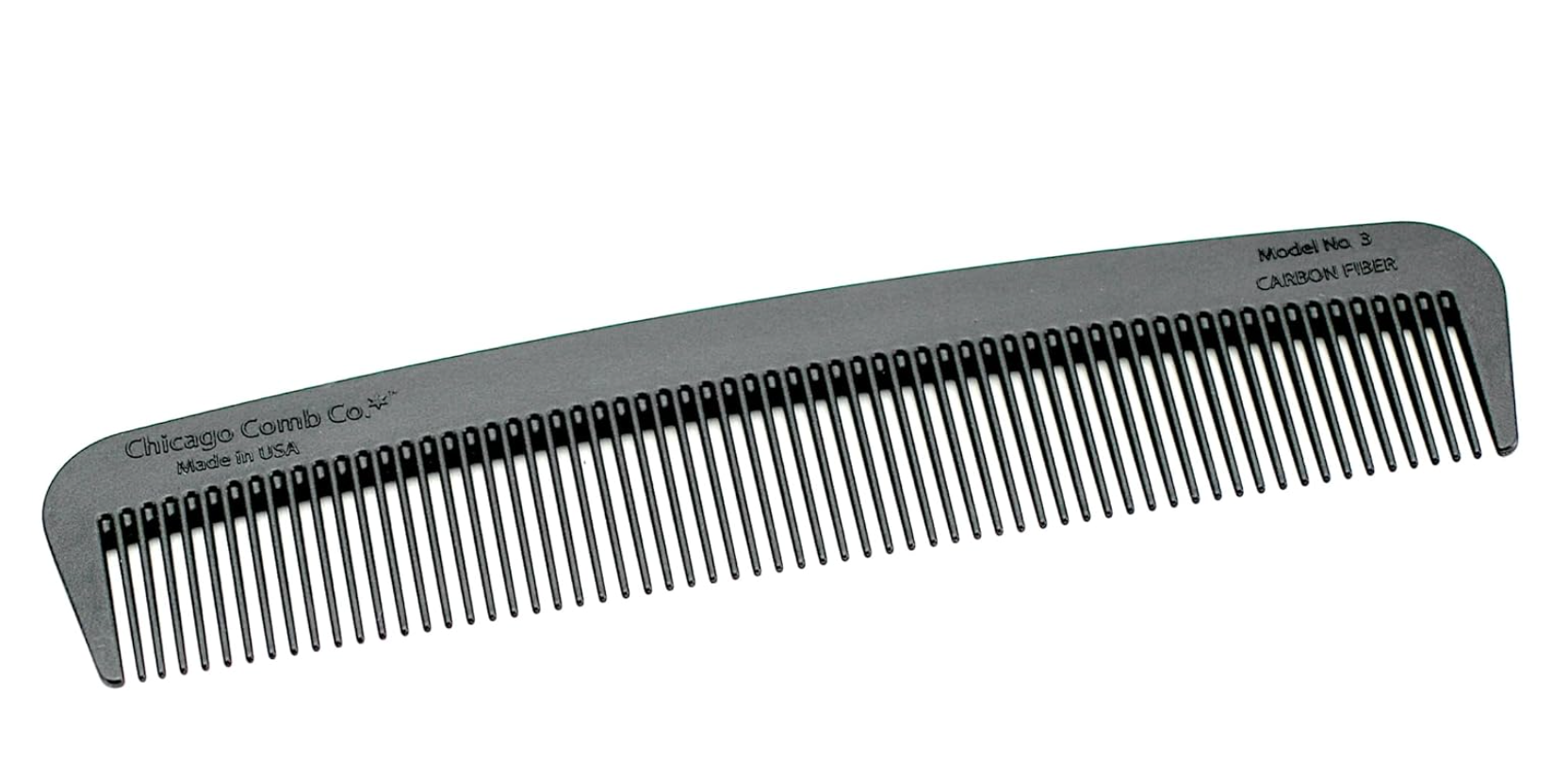 Chicago Comb Model 3 Carbon Fiber offers a modern interpretation of the traditional pocket comb. Fine-teeth. Makes a great daily use styling comb, especially for fine or thinning hair. Perfect for side parts and lining up hair for a precise, neat look.