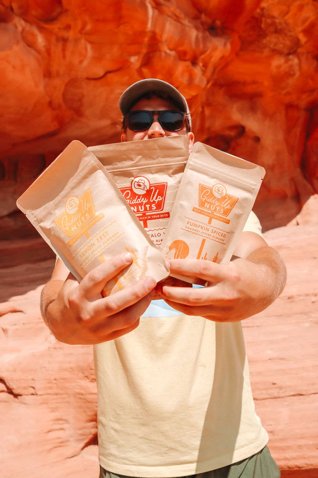 Brazen Buffalo Wing Almonds are a zingy take on the classic buffalo wing. Our California grown almonds are seasoned with zesty hot sauce, California garlic, blue cheese and celery salt. Giddy Up Nuts utilizes California almonds and fresh, all-natural ingredients to dream up flavor combinations that are in sync with what is in-season and abundant at the local farmer's markets.